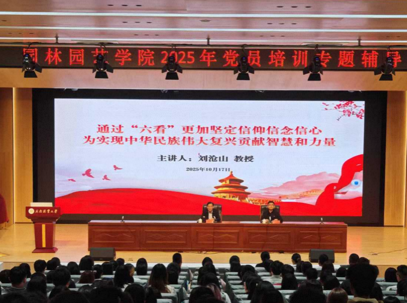 10月17日,学院党委特邀云南省教育厅关心下一代工作委员会常务副主任、省教育厅关工委宣讲团团长、三级教授、硕士研究生导师刘沧山,作题为《通过“六看”更加坚定信仰信念信心,为实现中华民族伟大复兴贡献智慧和力量》的专题培训讲座,这是学院党委按照上级党委的相关要求,抓好学院2025年党员教育培训工作的重要一讲。本次讲座由学院党委主要负责人主持,学院师生党员、积极分子300余人聆听报告。