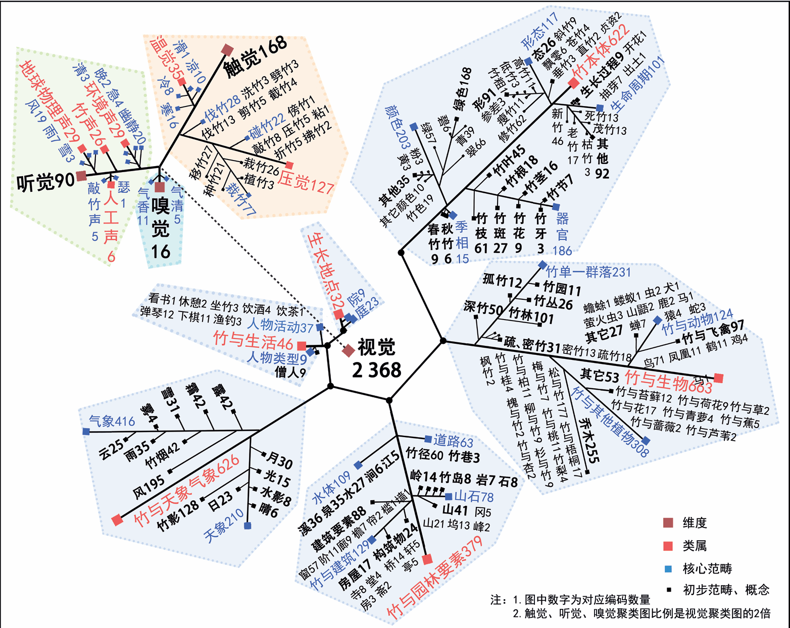 图1: 《全唐诗》所见竹五感景观聚类图