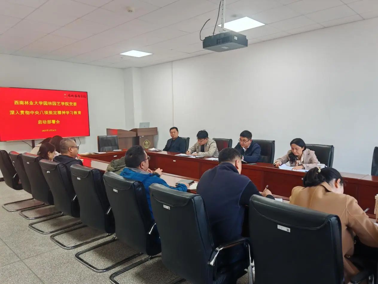 3月26日,园林园艺学院党委召开深入贯彻中央八项规定精神学习教育启动部署会。学院党政领导班子成员、各党支部书记参会,学院党委书记刘刚连主持会议并讲话。