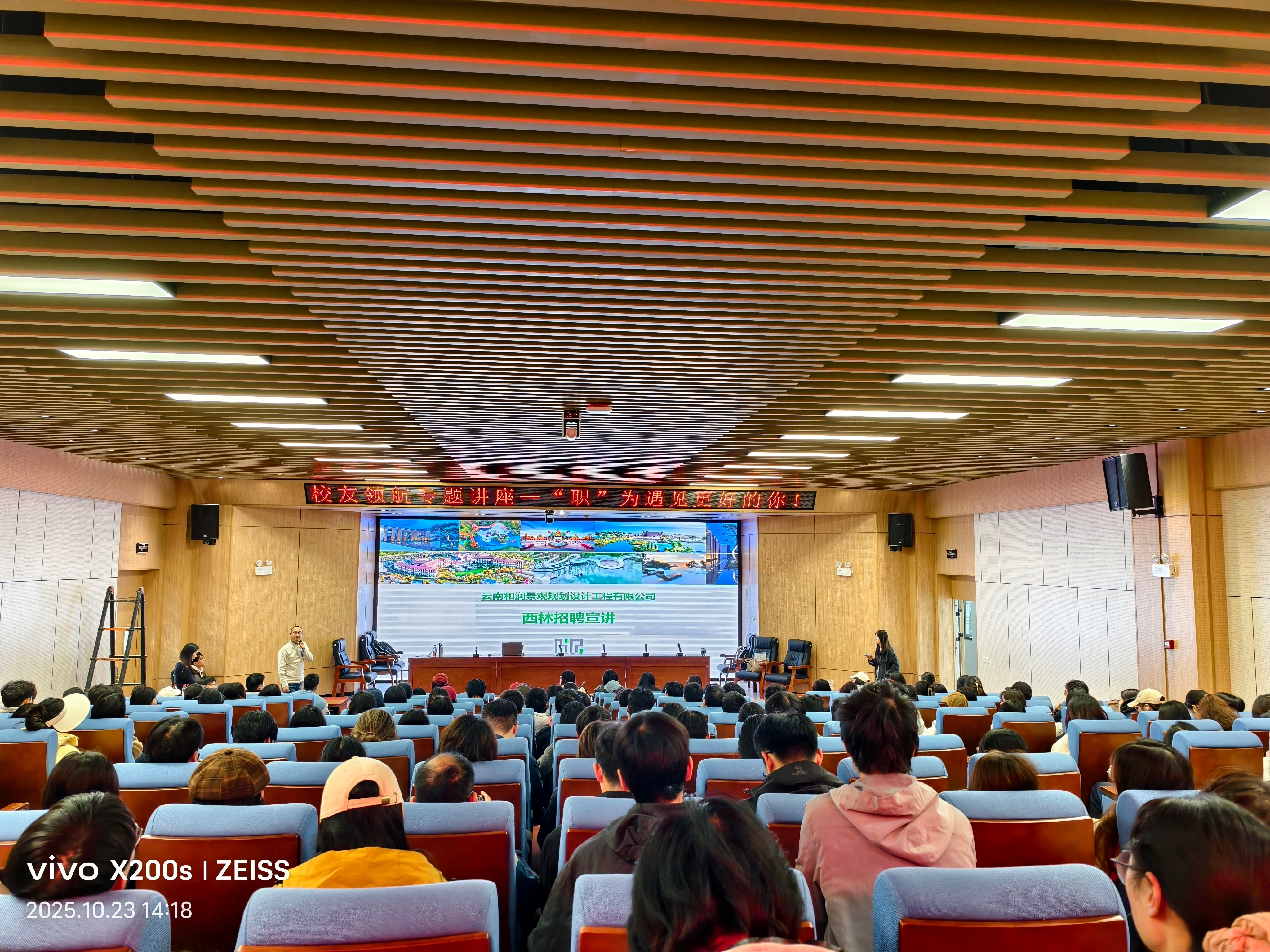 10月23日下午,云南和润景观规划设计工程有限公司专场宣讲会在园林园艺学院举行。这是促进毕业生高质量就业,搭建校企人才对接的有力行动。本次宣讲会吸引了园林园艺学院众多应届毕业生的积极参与,现场气氛热烈。